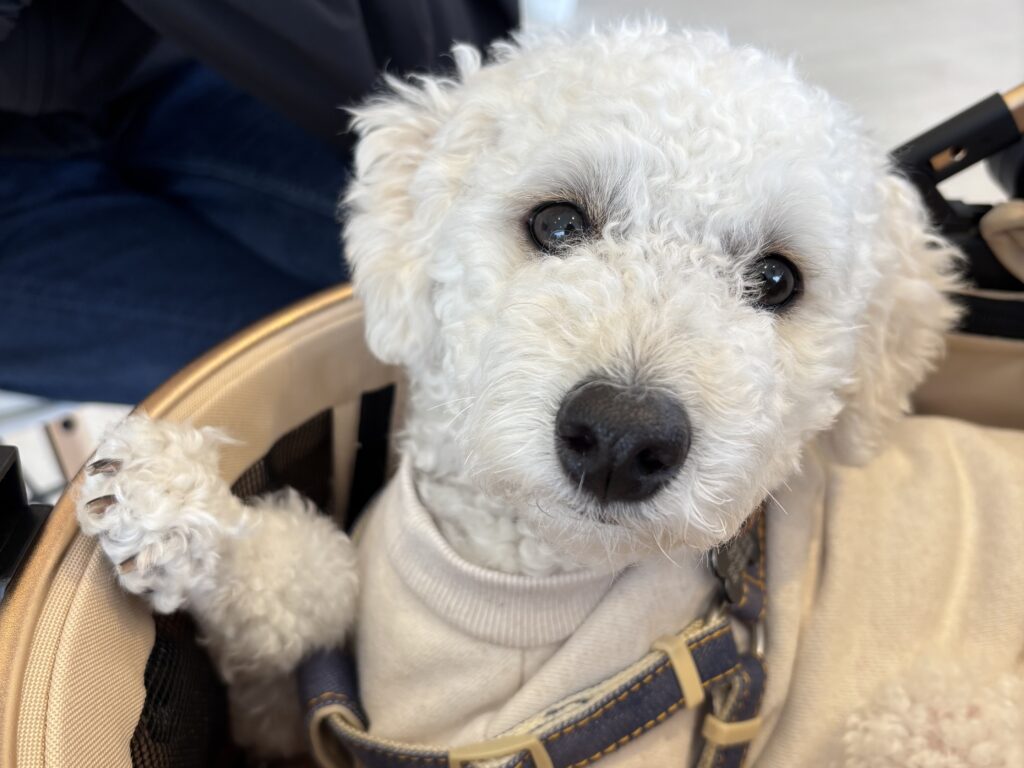 前に車の点検に行った時に担当の方にうちの店舗はわんちゃん同伴可能ですとと教えていただきました。