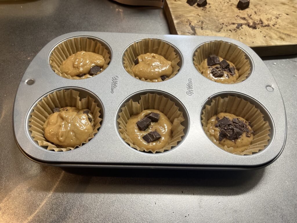 均等にチョコレートを分けたかったので、生地を混ぜる時チョコをいれませんでした。